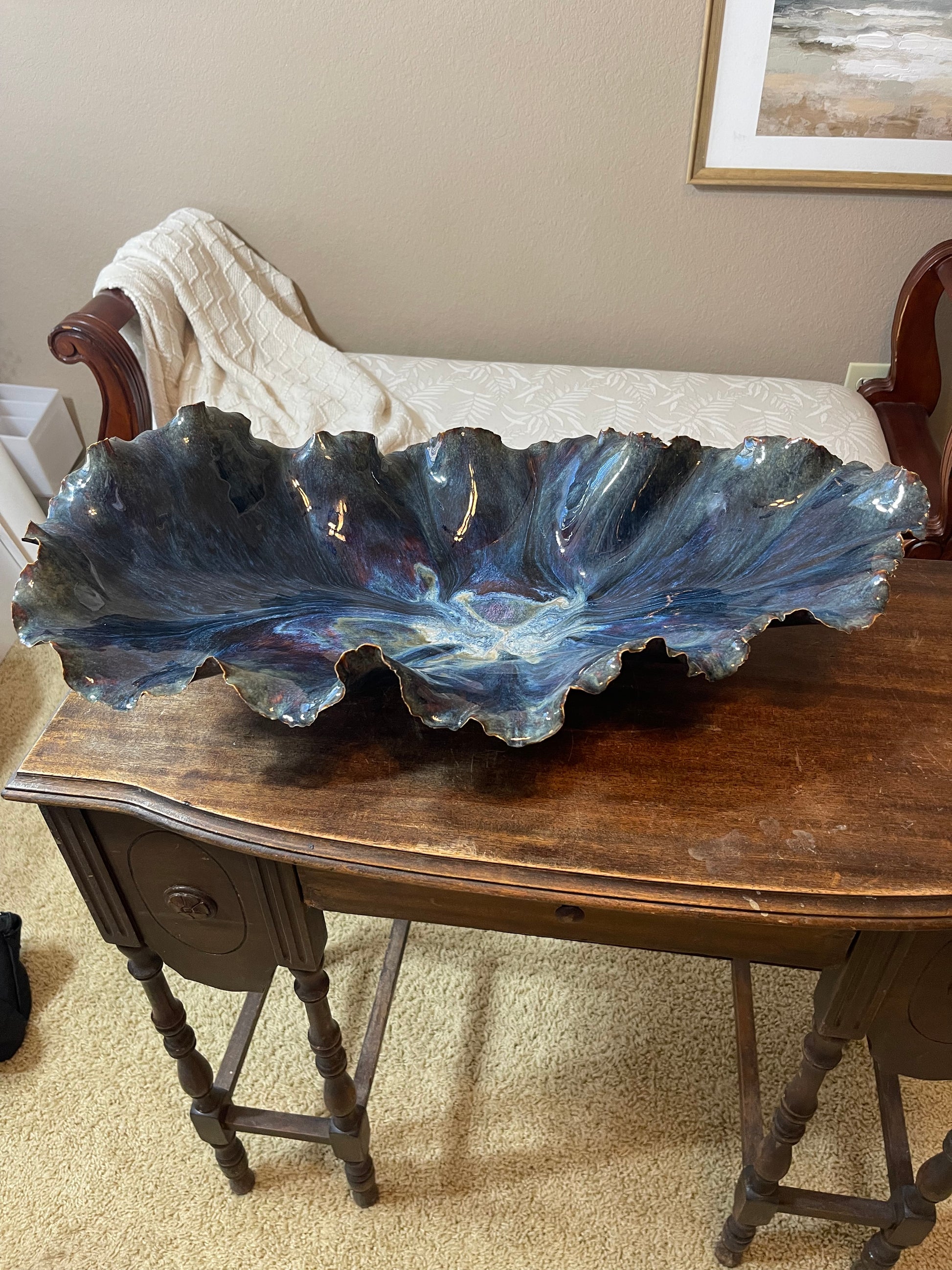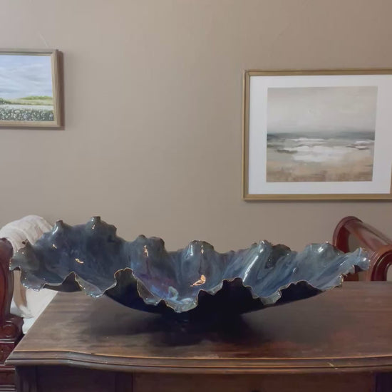 Sculpted entirely by hand and finished with layered glazes, the Midnight Tide Bowl is both sculptural and functional—a stunning statement piece for any interior.