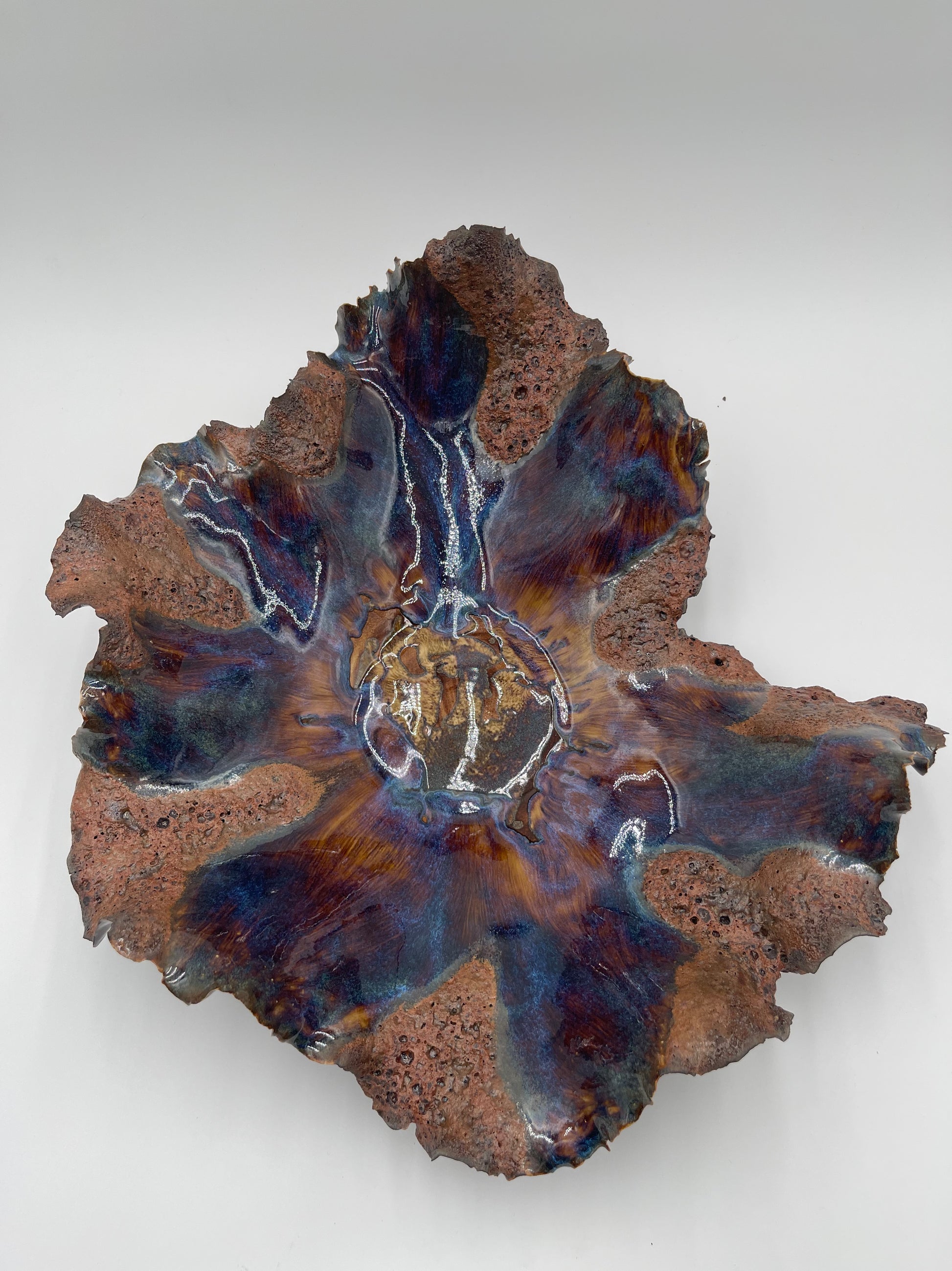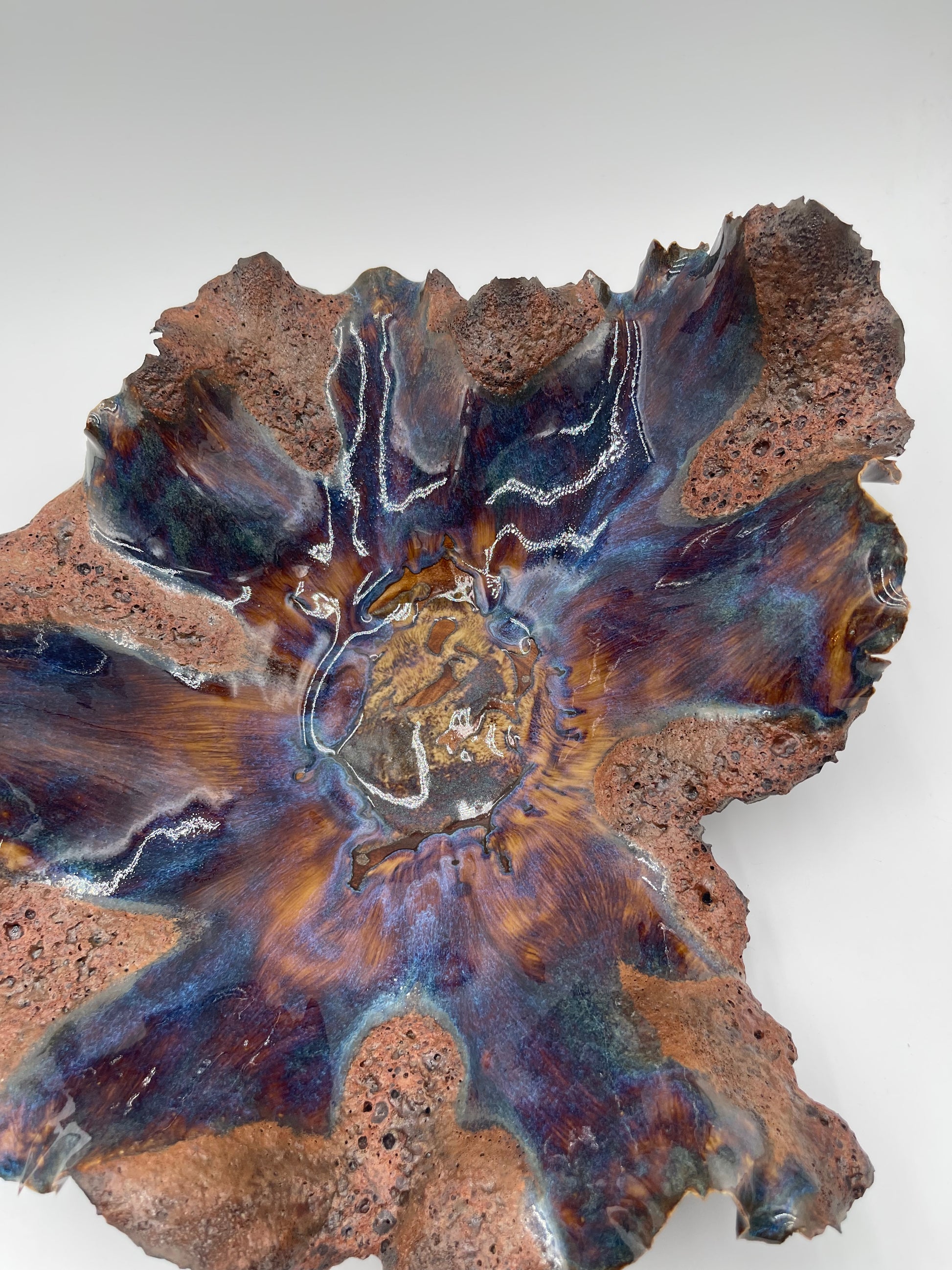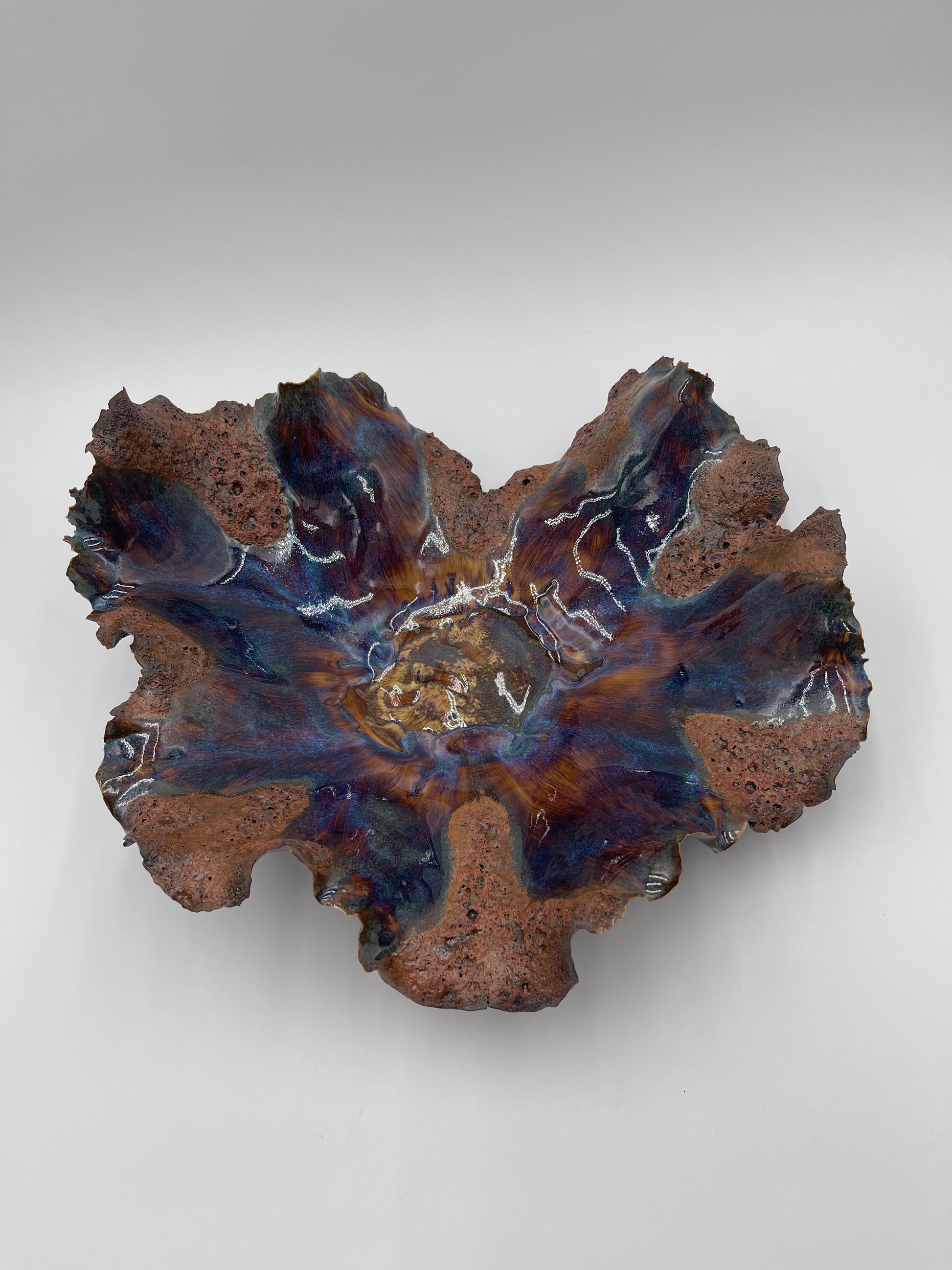 This Lava Vessel features meticulously sculpted porcelain clay and hand-painted layers of glaze to create a one of a kind design that will elevate the look of your home décor and become an heirloom piece for generations to come.